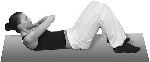 ■ из положения лежа с руками за головой параллельно туловищу постепенно и без резких движений поднимайтесь, садитесь, наклоняйтесь вперед, а потом так же постепенно ложитесь обратно (это упражнение применяла в процессе послебеременного восстановления Синди Кроуфорд);