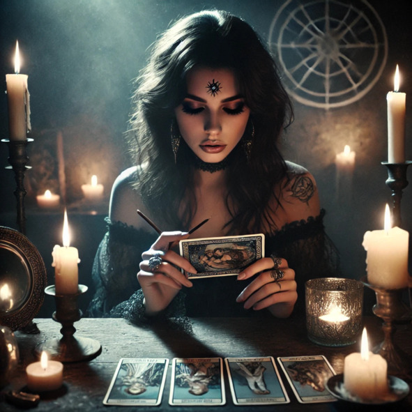 Медленным движением она вытянула руку к полке и достала свою любимую колоду Таро. Разложив тёмную ткань на столе, Эллаида сосредоточилась. Её губы беззвучно шевельнулись, произнося короткий заговор, призывая воспоминания.