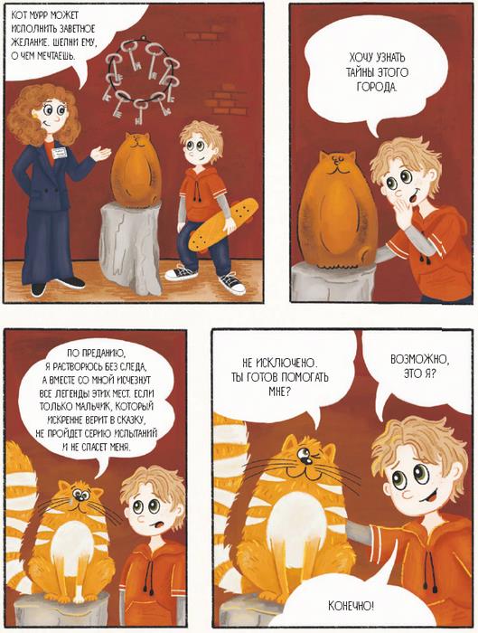 Пока родители рассматривали экспонаты музея, внимание Егора привлекла скульптура кота. Тот выглядел упитанным и самодовольным, а над головой животного на стене из красного кирпича висели гигантские ключи. Мальчик очень любил всех представителей семейства кошачьих, поэтому просто не мог отойти от скульптуры. В какой-то момент ему показалось, что кот моргнул и посмотрел на него.