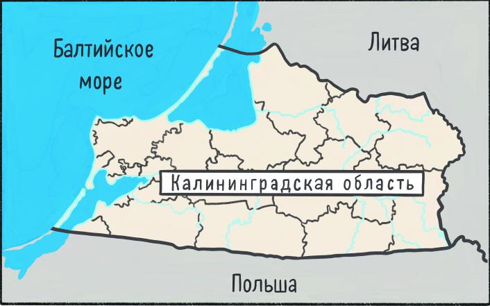Калининград – главный город Калининградской области. Она расположена на самом западе России и отделена от остальной страны другими государствами. На юге граничит с Польшей, а на севере и востоке с Литвой. Общей сухопутной границы с Россией область не имеет, но соединена с ней морем. На языке специалистов это называется «полуэксклав».