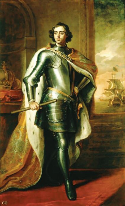 Портрет Петра I, написанный живописцем Готфридом Кнеллером в 1698 году во время Великого посольства Петра I