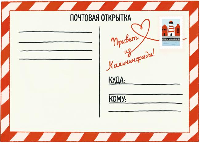 Представь, что ты находишься в Музее почтовых открыток и имеешь возможность отправить письмо куда вздумается. Напиши на этой пустой открытке послание из Калининграда. Можешь дополнить его рисунком.
