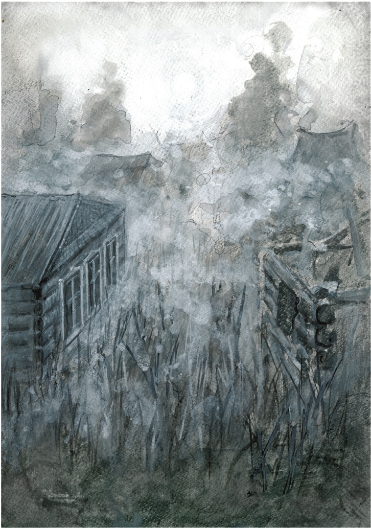 Только-только начало светать, когда я свернул с трассы и въехал в деревню по дороге, заросшей травой. Ехать пришлось наугад, поскольку трава была высотой лишь немного ниже, чем машина. Плюс к этому стоял такой густой туман, что буквально в пяти метрах ничего не было видно.