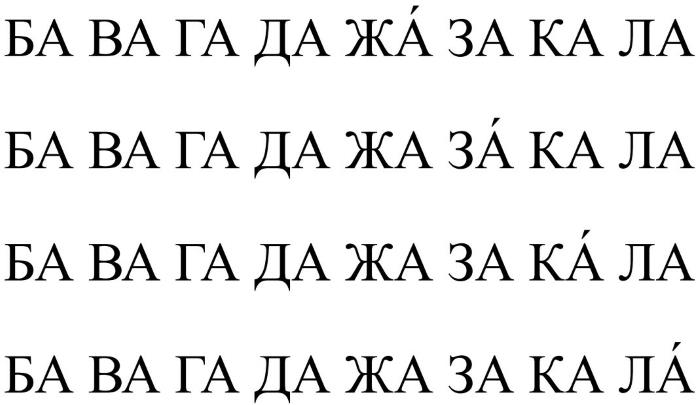 Произносим указанные слоги от начала до конца. При этом после произношения восьми слогов выходим на следующий круг, перенося ударение на очередной слог:
