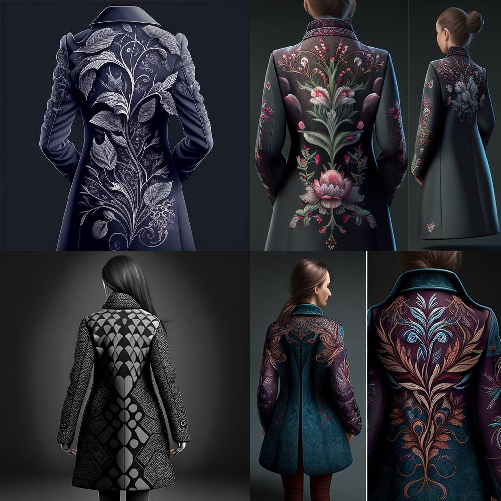 Рисунок 1. Дизайн женского пальто с рисунком на спине. Сгенерировано с помощью https://www.midjourney.com/