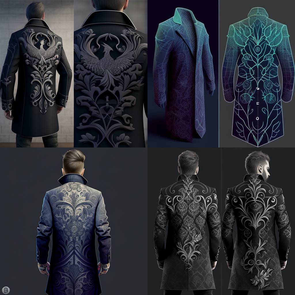 Рисунок 2. Дизайн мужского пальто с рисунком на спине. Сгенерировано с помощью https://www.midjourney.com/