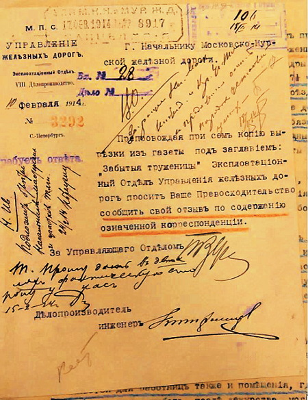 Ведомственная переписка по поводу статьи «Забытые труженицы» (1914 г.)