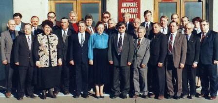 (На фото – автор неизв.: депутаты Амурского областного собрания. В.А. Тягунин во втором ряду, 3-й слева. 1997 г.)