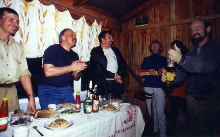 (На фото – автор неизв.: праздничный стол по поводу получения гранта «Озеро белых птиц», 1993 г.)