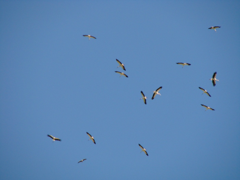 Фото Чарльза Лейна. Кордон Кирпу, сентябрь 2007. Предмиграционное скопление 59 особей дальневосточного аиста.