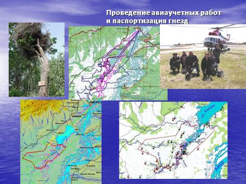 Одновременно с изъятием птенцов, с участием российских и японских специалистов, 21–23 июня 2004 года были проведены авиаучетные работы редких видов птиц Болоньского заповедника и долины Амура, прилегающей к его территории. Этими учетами закончена работа по составлению первого Кадастра гнезд редких видов птиц Болоньского заповедника.