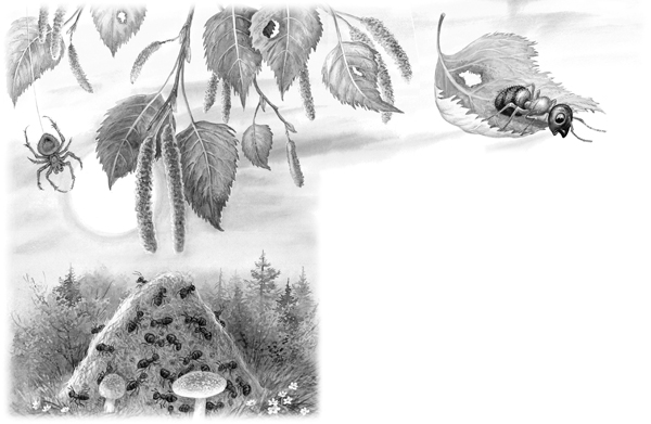 Залез муравей на берёзу. Долез до вершины, посмотрел вниз, а там, на земле, его родной муравейник чуть виден.