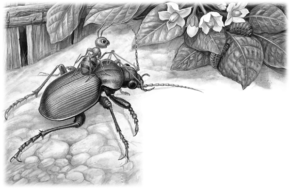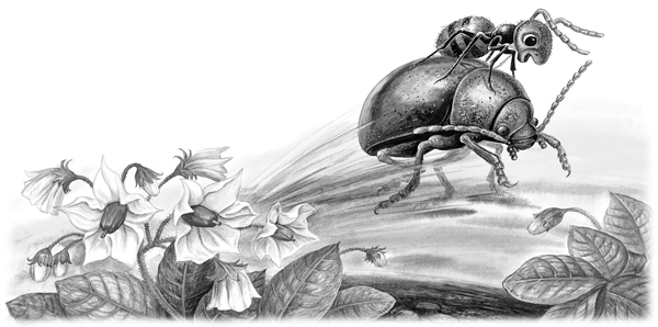 Только успел Муравьишка вскарабкаться Жужелице на спину, она как пустится бежать! Ноги у неё ровные, как у коня.