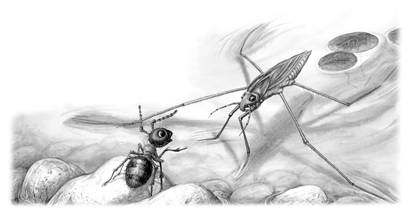 Сел Муравьишка. Водомер под-прыгнул и зашагал по воде, как посуху. А солнце уж совсем низко.