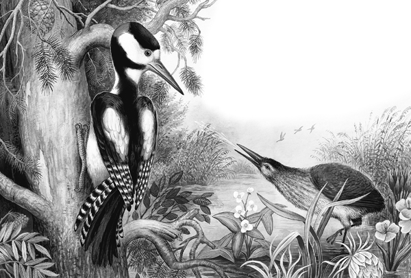 Упёрся Дятел крепким, жёстким своим хвостом в кору, размахнулся всем телом да как стукнет носом по суку – только щепки полетели!