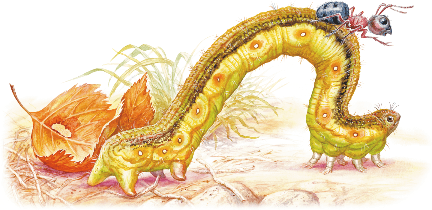 Смотрит Муравей: рядом Гусеница-Землемер лежит. Червяк червяком, только спереди – ножки и сзади – ножки.