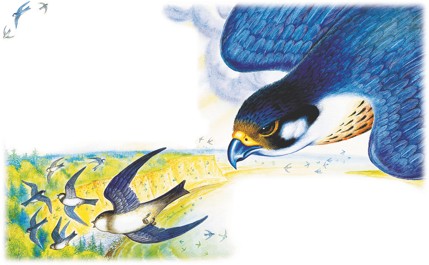 Вдруг – откуда ни возьмись – Чеглок-Сокол мчится. Острые изогнутые крылья так и свистят.