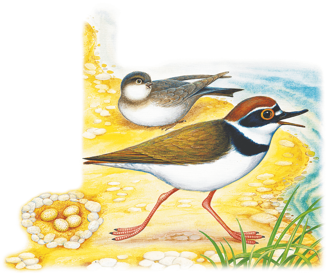 Зуёк пробежал несколько шагов и показал клювом на песок. Потом закланялся, закачался на тоненьких ножках и говорит:
