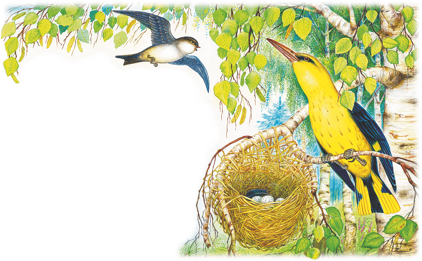– Иволга – это я, – говорит золотая птица. – А дом мой на этой красивой берёзе.