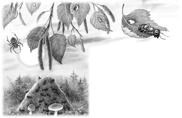 Залез Муравей на берёзу. Долез до вершины, посмотрел вниз, а там, на земле, его родной муравейник чуть виден.