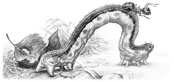 Смотрит Муравей: рядом Гусеница-Землемер лежит. Червяк червяком, только спереди – ножки и сзади – ножки.