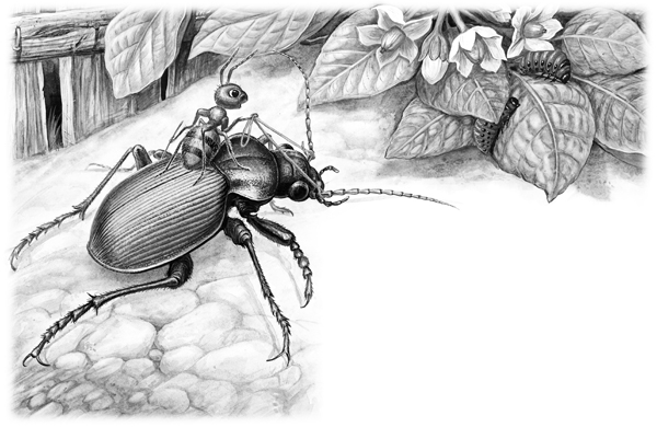 Только успел Муравьишка вскарабкаться Жужелице на спину, она как пустится бежать! Ноги у неё ровные, как у коня.