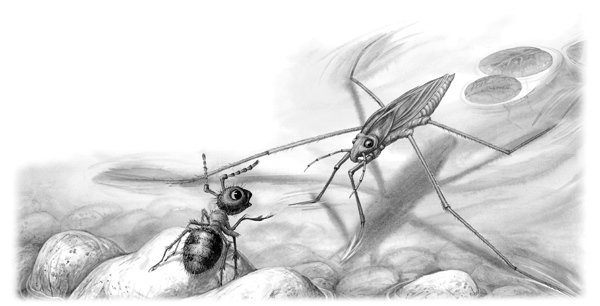 Затрещал по-своему, глядь – бежит по воде лодочка на ножках. Подбежала. Нет, не лодочка, а Водомерка-Клоп.