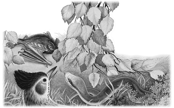 Только теперь корольки узнали, какие страшные соседи жили под их гнездом.