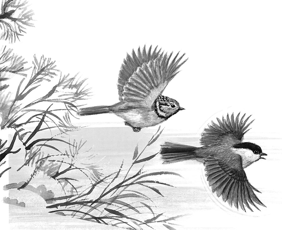 Свистя и передразнивая поползня, полетели за ним стайки синиц, пищухи и корольки.