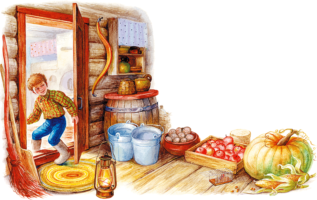 Нельзя было медлить ни минуты: мороз шутить не любит. Надо в погреб и поскорей наесться зерна: сытому теплей, сытого мороз не убьёт.