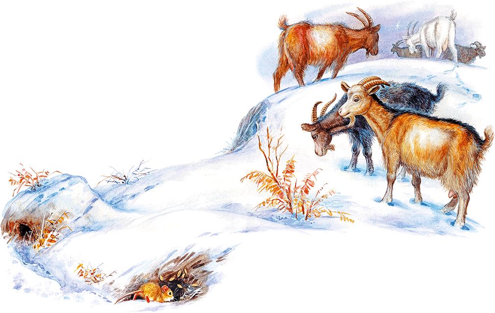 Но весь снег кругом был изрыт узкими глубокими ямками – следами козьих копыт.