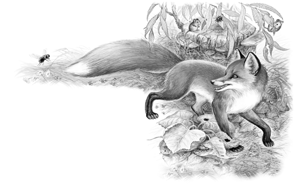 Полетела дальше и увидала Лисицу. Эх, и хвост у Лисицы! Пышный да рыжий, красивый-красивый!