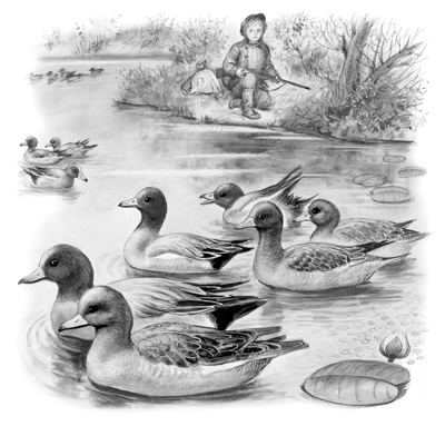 С утра на реке палили охотники: начиналась охота на уток. Весь день Анютка не находила себе места: «А ну, как убьют охотники Белое Зеркальце?»
