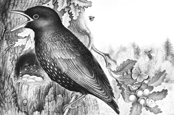 Узнал про то дупло Скворец. Прилетел. Видит – дуб, в дубу – дырка. Чем Скворцу не теремок?