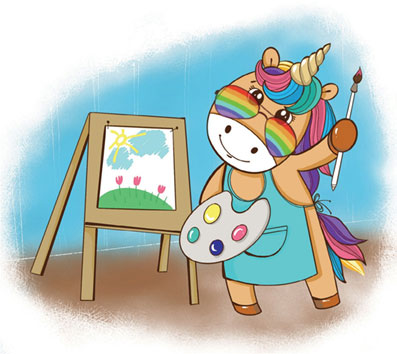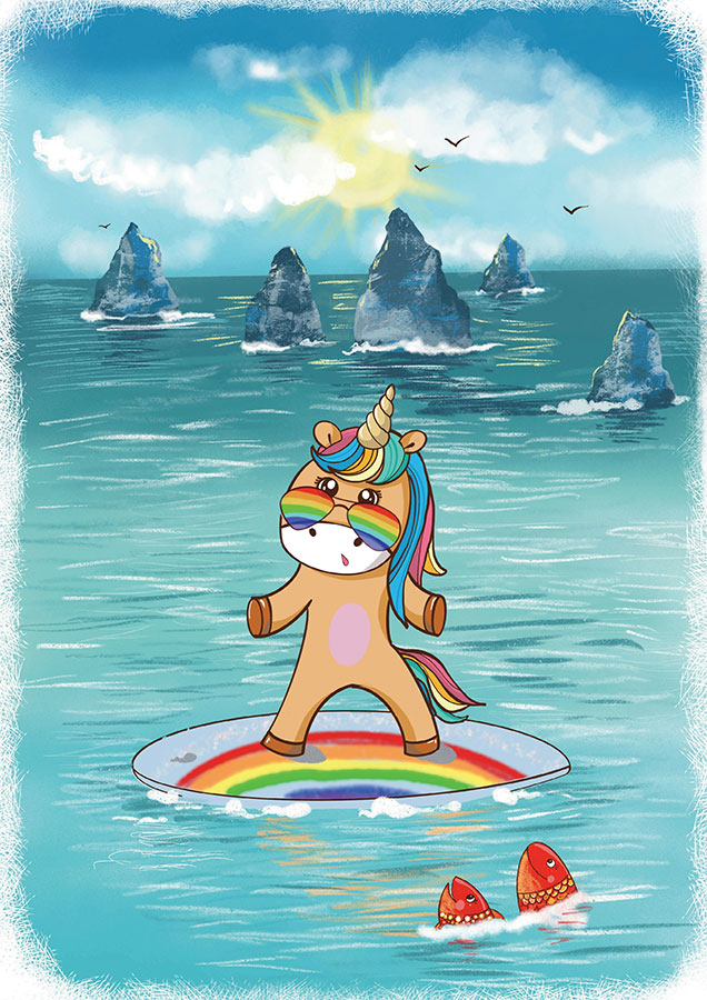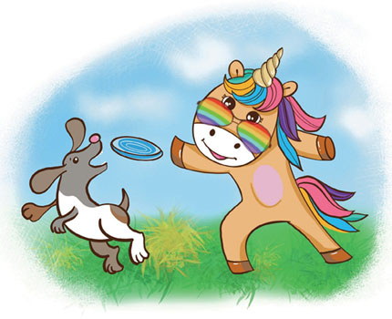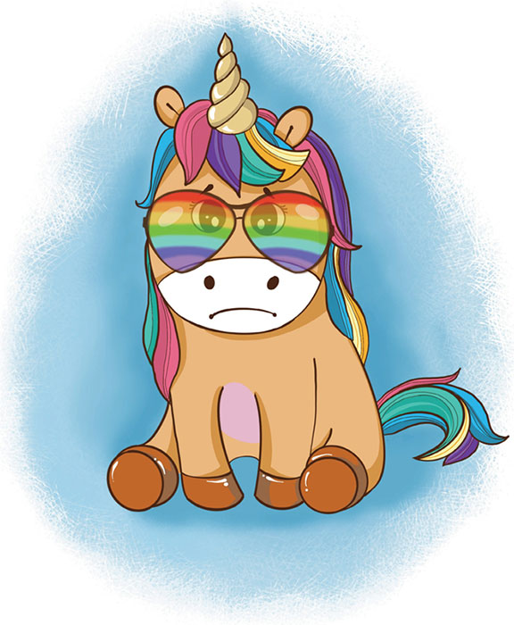 ТОТТИ – сильный и уверенный в себе молодой единорог. А еще он очень стильный. И всегда носит солнечные очки радужного цвета.