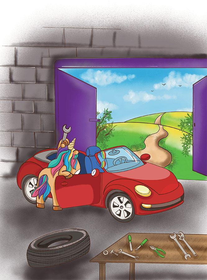ОН задумался. Как же сделать так, чтобы было можно вместе с МОТТИ покататься на автомобиле?
