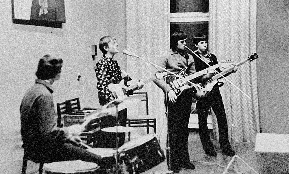 Но, на наше счастье, у Вадима Дмитриева, с которым мы начинали, мама работала в Институте полиомиелита (Институт полиомиелита и вирусных энцефалитов им. М.П. Чумакова). Этот институт расположен в нескольких автобусных остановках от Внукова, в поселке все того же Института полиомиелита, и там тоже был ДК, инструменты и хорошая аппаратура. Каким-то образом она договорилась, чтобы нам разрешили там репетировать. Я играл на бас-гитаре, Вадим и Саша Шуриков – на гитарах, а Вадим – еще и на органе, там была органола «Юность»[28]. Барабанщик – Николай Цыганов – у нас был местный, из этого поселка. Для нас оказалось важно, что есть «местный» участник группы, еще и поэтому нам разрешили играть в этом ДК. Чтобы все было официально, нам дали даже художественного руководителя – девушку, которая была старше нас года на 3–4 (но нам она тогда казалась уже очень взрослой). Скорее всего, она была преподавателем музыки где-то в поселке и ходила к нам, наверное, в качестве общественной нагрузки. Нам это нисколько не мешало, мы занимались своими делами.