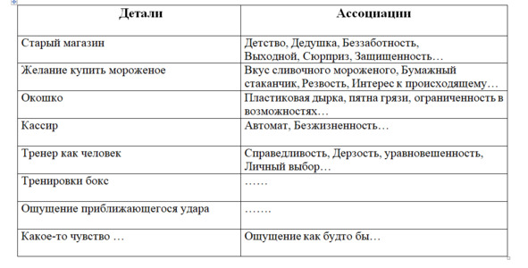 Пример: «Я стою возле старого магазина, собираюсь купить мороженое. Заглядываю в окошко, и вижу, что кассир – моя тренер по боксу. Она резко замахивается на меня. Я чувствую, что…»