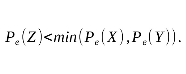– Избыточность информации между и уменьшает общую вероятность ошибки по сравнению с любым из решений по отдельности: