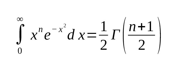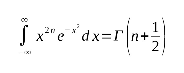 Это означает, что интегралы «гауссового» типа с четными и нечетными степенями $ x $ напрямую связаны с гамма-функцией от полуцелого (дробного) аргумента [14] [17].