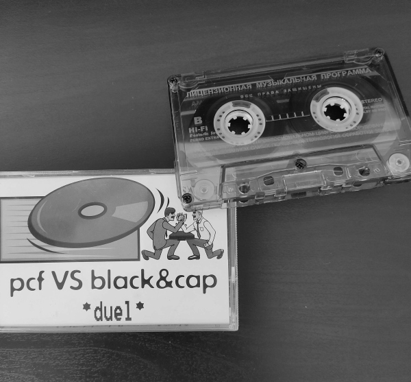 В клубе я познакомился с одним из тусовщиков – начинающим музыкантом, 19-летним парнем, таскающим повсюду с собой Roland Groovebox MC303 и время от времени выступающим в «Манхэттене» под псевдонимом PCF, – Олегом Золотаревым. Мы сдружись с ним и часто тусили у него дома. Как-то, сидя у него в квартире, нам пришла идея выпустить собственную кассету. У родителей Олега была знакомая владелица магазина брендовой итальянской одежды в Нижнем Новгороде. Она согласилась стать спонсором и взяла на себя все расходы по производству тиража кассет. Мы в свою очередь должны были указать логотип ее бутика одежды на обложке и обеспечить распространение кассет в магазинах Нижнего Новгорода. Мы подписали договор, и уже через месяц наша кассета PCF vs Black&Cap появилась на прилавке модного магазина того времени – «Луноход», где продавались виниловые пластинки и одежда местных дизайнеров. Это было настоящим достижением для нас всех. На одной стороне кассеты были записаны треки Олега, а на другой стороне наши с Павликом неофициальные ремиксы на Jean Michel Jarre, Tito&Tarantula и пара оригинальных работ (в авторских правах в то время особо никто не разбирался).