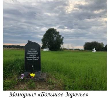 Важным объектом военной истории является мемориал деревни Большое Заречье. Это сожженная немецкими войсками деревня, сохранившая лишь остатки домовых печей, имеет второе название «Русская Хатынь», по аналогии с польской деревней, также сожженной в ходе войны