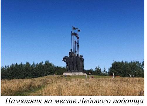 В окрестностях Пскова находится место, где произошло Ледовое побоище. В настоящее время установлен величественный памятник, изображающий дружину русских витязей, стоящих на защите Отечества.