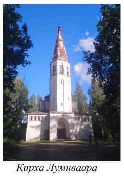 2. открытая, но не действующая кирха Лумиваара, с финским военным мемориалом;