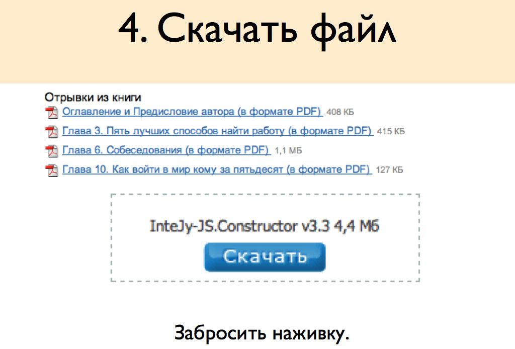 Это уже целевое действие для теплого лида. Чтобы скачать что-то, нужно чуть больше усилий, чем чтобы просто перемещаться по страницам. Если человек что-то скачал, значит, ему уже как минимум интересно. А как максимум он готов вступить в контакт.