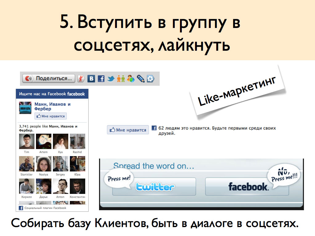 3. По возможности сделать так, чтобы они поделились информацией о нас (если не купят и не подпишутся, так пусть хоть запомнят и расскажут другим).