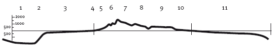 Илл. 4. Гипсометрический профиль через остров Сокотра и его шельф вдоль меридиана гор Хагьхер