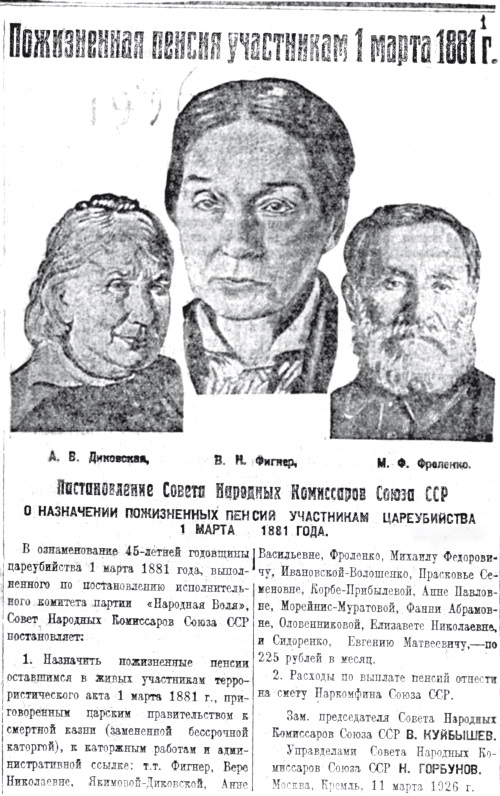 Вполне возможно, однако, что Фигнер не сделала этого по политическим соображениям высшего порядка, так как к моменту публикации книги в России многое изменилось. «Народная воля» стала необходимым звеном в цепи так называемой освободительной борьбы, которую принялись созидать новые советские историки от большевистской партии. Советские вожди охотно согласились иметь своей предтечей «Народную волю», с ее тактикой заговора и неумолимым желанием уничтожить царя. В такой обстановке Фигнер просто не могла позволить себе разоблачения своих соратников, тем более что кроме догадок и подозрений она ничем другим не располагала.