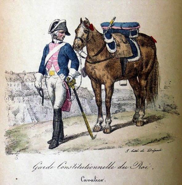 Часть роялистов пробирается в Париж и вступает в Конституционную Гвардию, которая по декрету Ассамблеи, от 3 сентября 1791 года, должна была защищать Короля и его семью. Конституционная гвардия состояла из 6 пехотных рот по 200 человек, и трех эскадронов кавалерии по 200 человек.