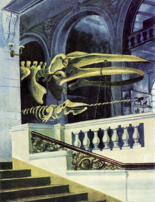 Но есть в Санкт-Петербурге музей, где не найти ни оружия, ни старинных картин, ни золотых украшений – и всё-таки в его залах всегда много людей. Это музей животных, Зоологический музей. Поднимешься по широкой лестнице – и перед тобой, как каркас большого корабля, возникнет скелет синего кита, самого крупного животного, какое только есть на земле. Он едва-едва помещается в просторном светлом зале.